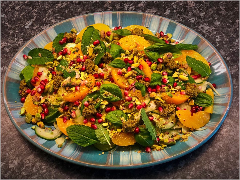 Fennel and Peach Salad with Mint, Pistachios and Pesto (serves 4)